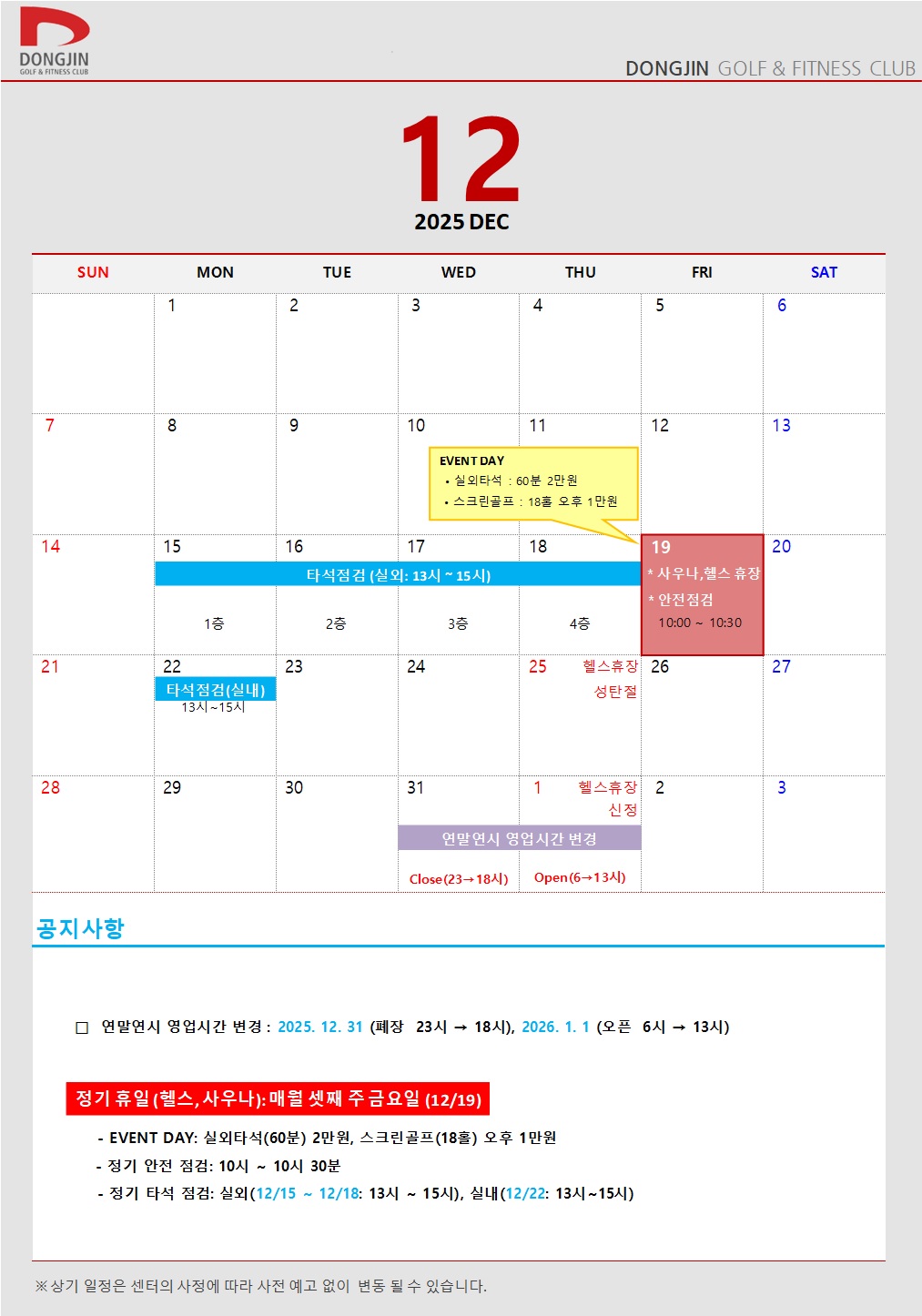 (12월) 공지사항